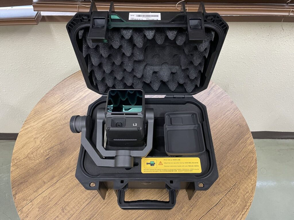DJI社のドローン搭載LiDAR Zenmuse L2です.上記画像のようにドローンから地形や構造物の三次元情報(点群データ)を取得したり,航空写真を撮影したりすることができます.お値段はなんとドローン本体よりも高額です.