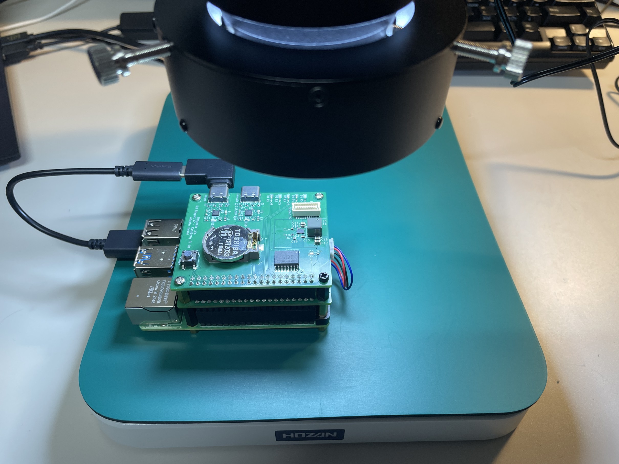 ドローン搭載合成開口レーダの制御基板(Raspberry Pi拡張基板)を観察してみました.顕微鏡画像はドローンのバッテリーから供給される電圧をRaspberry Piの動作電圧まで降圧するスイッチングレギュレータ部分です.部品の実装ははんだペーストを基板に塗布してホットプレートで溶融させる方法をとっているので結構な確率ではんだ不良が発生します.肉眼ではどの部分が不良かわかりづらいですが,実体顕微鏡であれば基板上の埃の形までわかるので,はんだ不良の発見や手直しなどが非常にやりやすくなりました.