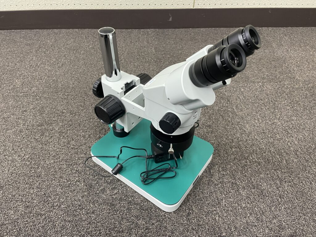 精密作業を行うのに使用する実体顕微鏡HOZAN L-46です.7~45倍までの倍率に対応しています.